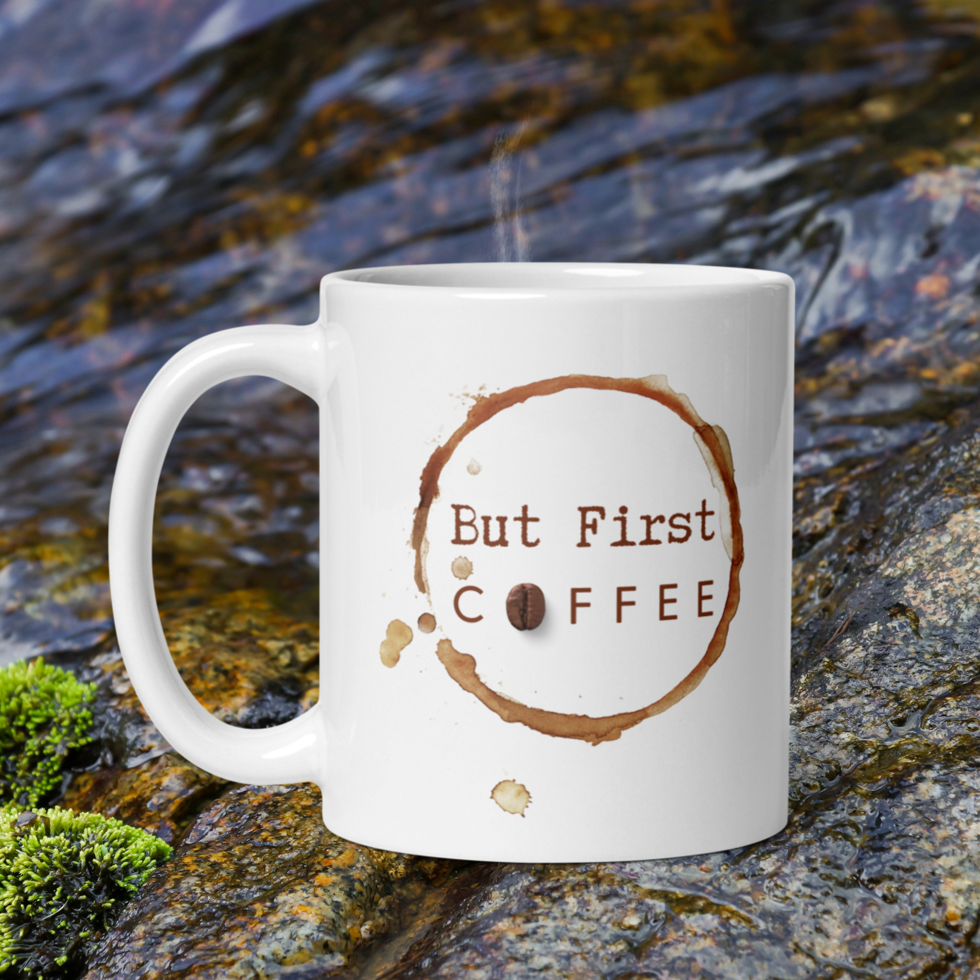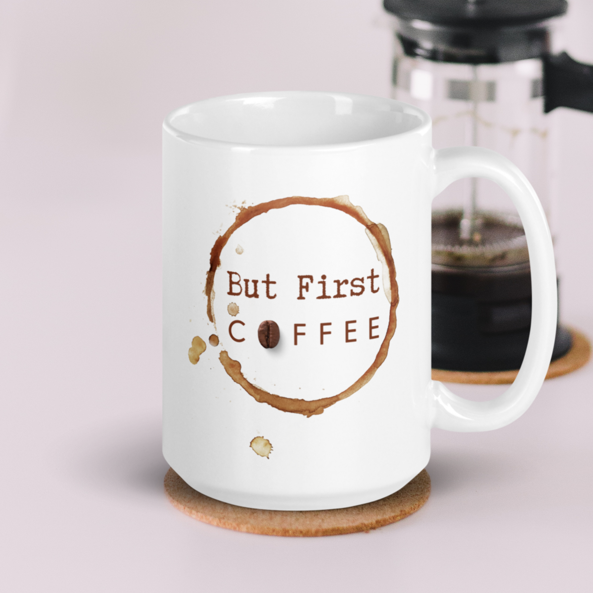 This "But First Coffee" mug is perfect for anyone who knows that the best way to start the day is with a fresh cup of hot coffee. Crafted from high-quality ceramic, this mug is microwave and dishwasher-safe for easy cleaning. The design is printed on both sides of the mug, so it's perfect for left and right-handed drinkers. Available in 11oz and 15oz sizes, this mug makes a great gift for any coffee lover.