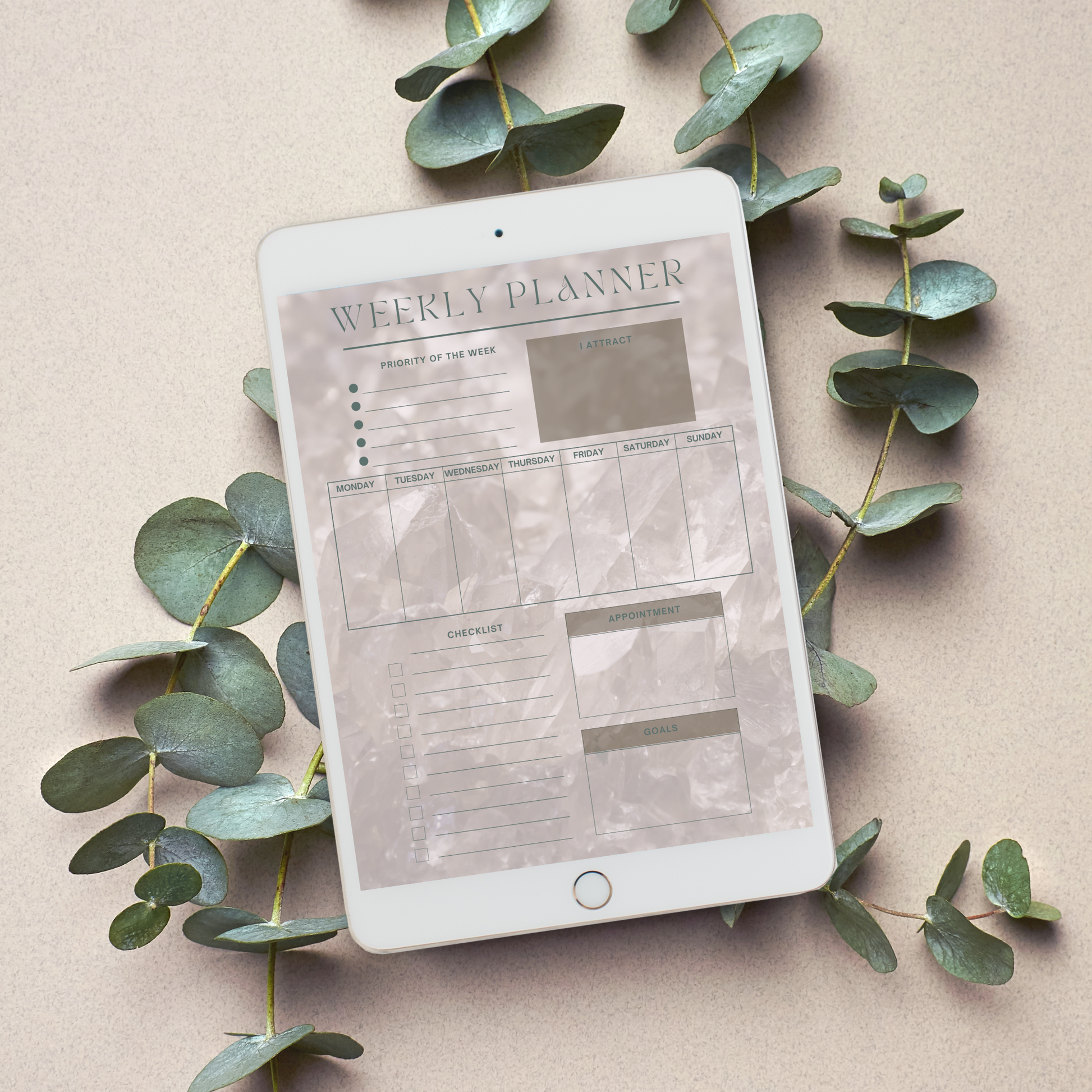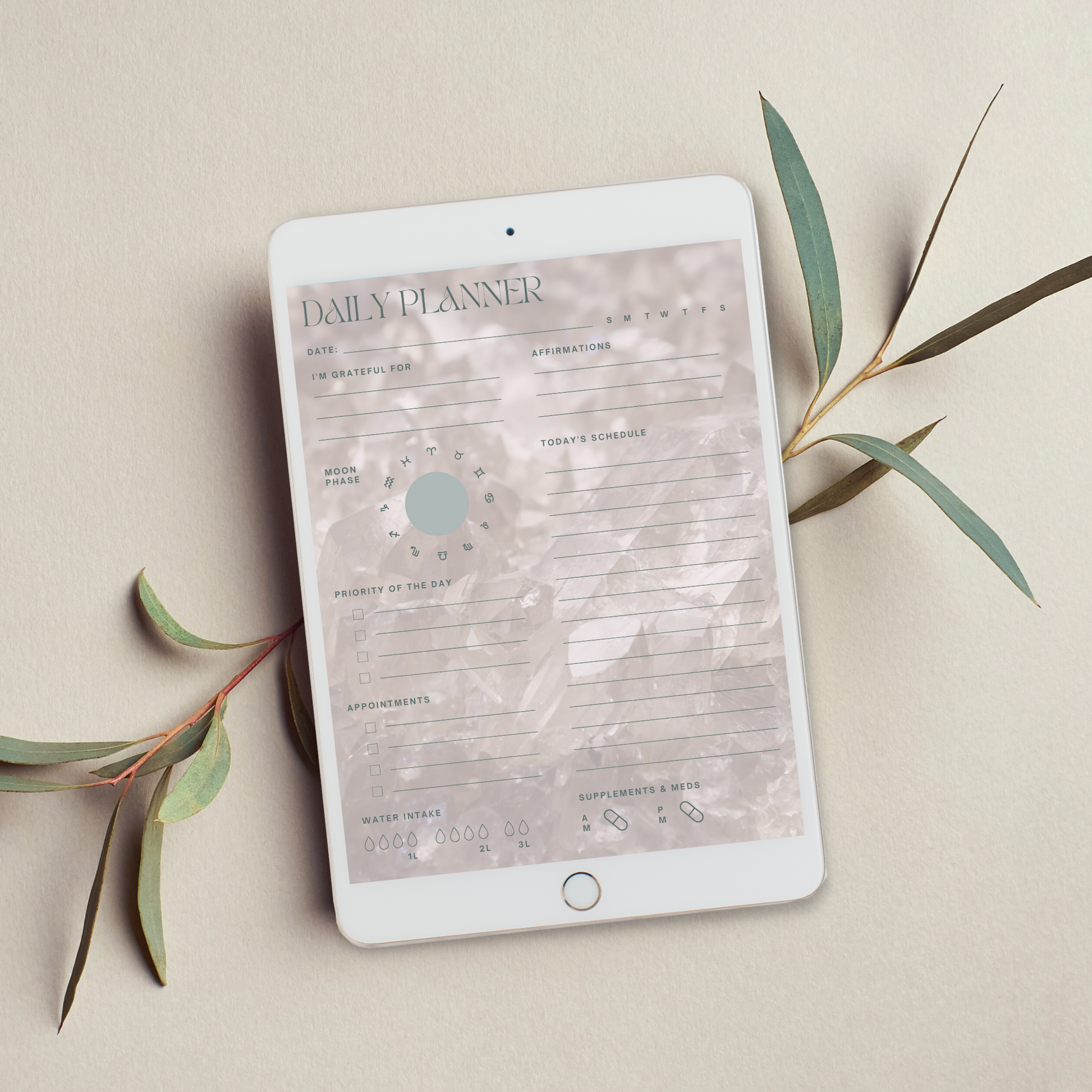 Featuring the grounding power of Black Tourmaline, this planner is available as a digital download in PDF format, making it easily accessible on any PDF-compatible app, such as GoodNotes and Notability. You also have the option to print it out and use it as a traditional planner. Whether you're looking to manifest abundance, improve your relationships, or achieve your career goals, this planner is the perfect companion on your journey towards creating the life you desire. Get your hands on this powerful tool and start manifesting your dream life today!