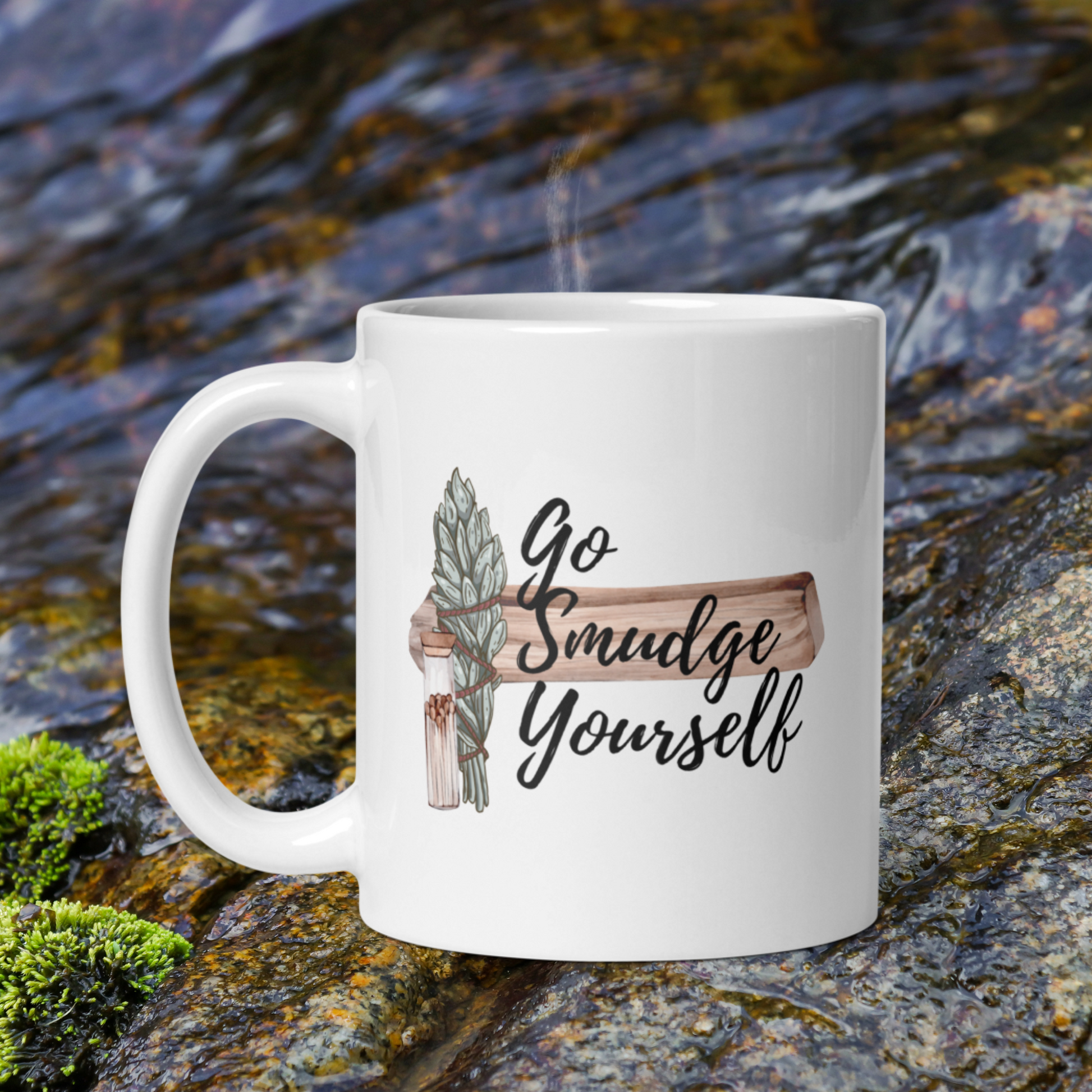 Sometimes the energy is just off, and this "Go Smudge Yourself" mug is the perfect way to help you clear it! Featuring a sage and palo santo design, this mug is sure to help you clear the energy for a better morning. Crafted from high-quality ceramic, it's microwave and dishwasher-safe for easy use and cleaning. Available in 11oz and 15oz sizes, the design is printed on both sides, so left and right-handed drinkers can enjoy it.