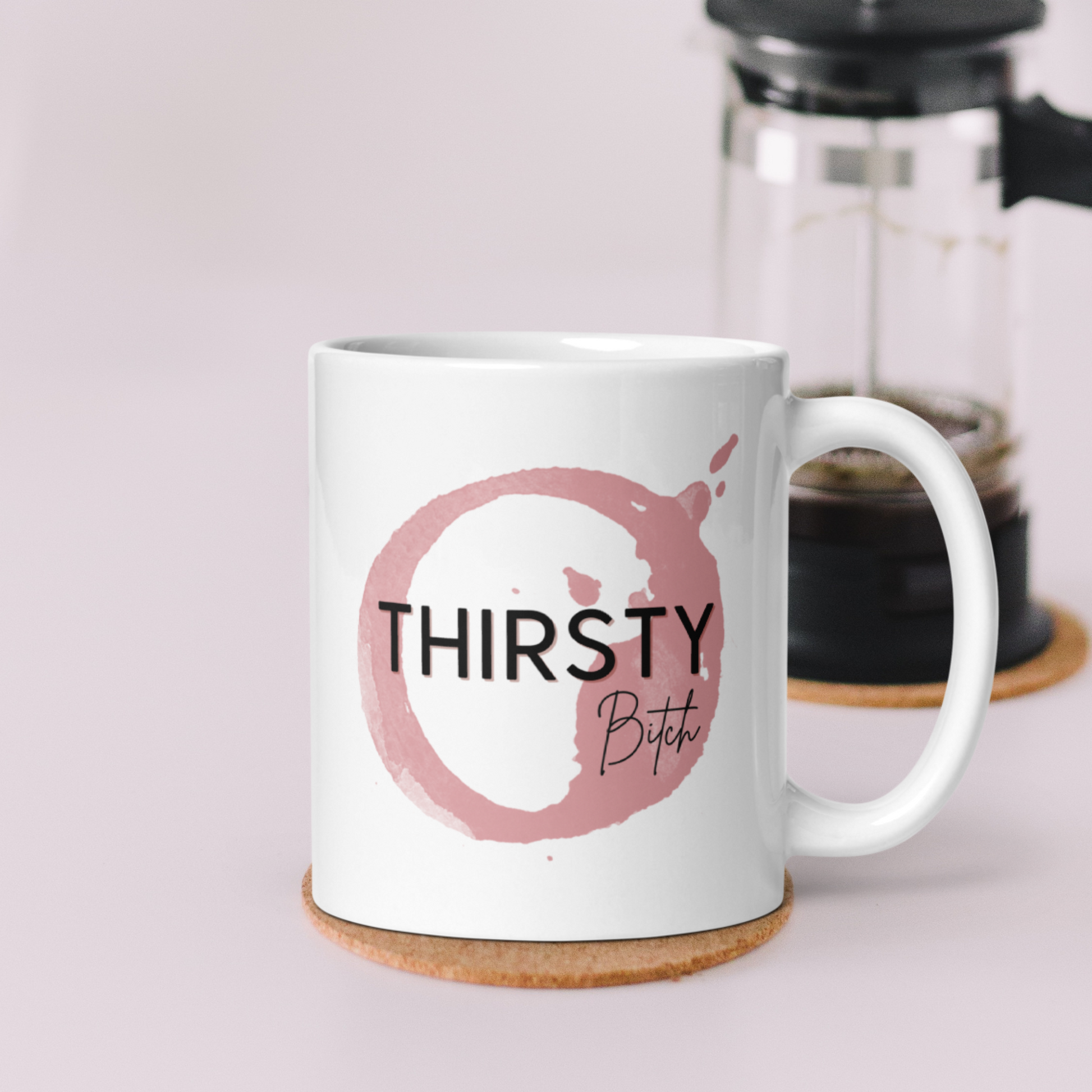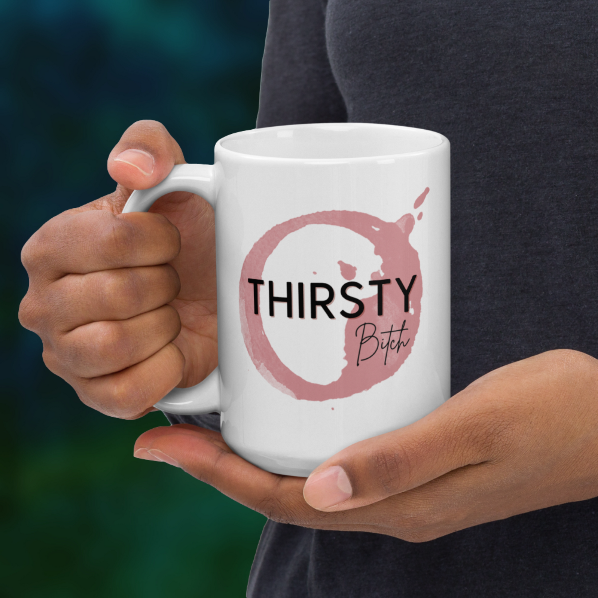 For the thirstiest bitches. Introducing our "Thirsty Bitch" mug. Made from high-quality ceramic, this mug is both microwave and dishwasher-safe for your convenience. The mug is perfect for those who appreciate a bit of sass in their morning routine. The design is printed on both sides for left and right-handed drinkers, so you can enjoy your drink from any angle. Available in 11oz and 15oz sizes to suit your preferred beverage. Show off your sense of humor and enjoy your morning coffee or tea with our "Thirsty Bitch" mug.